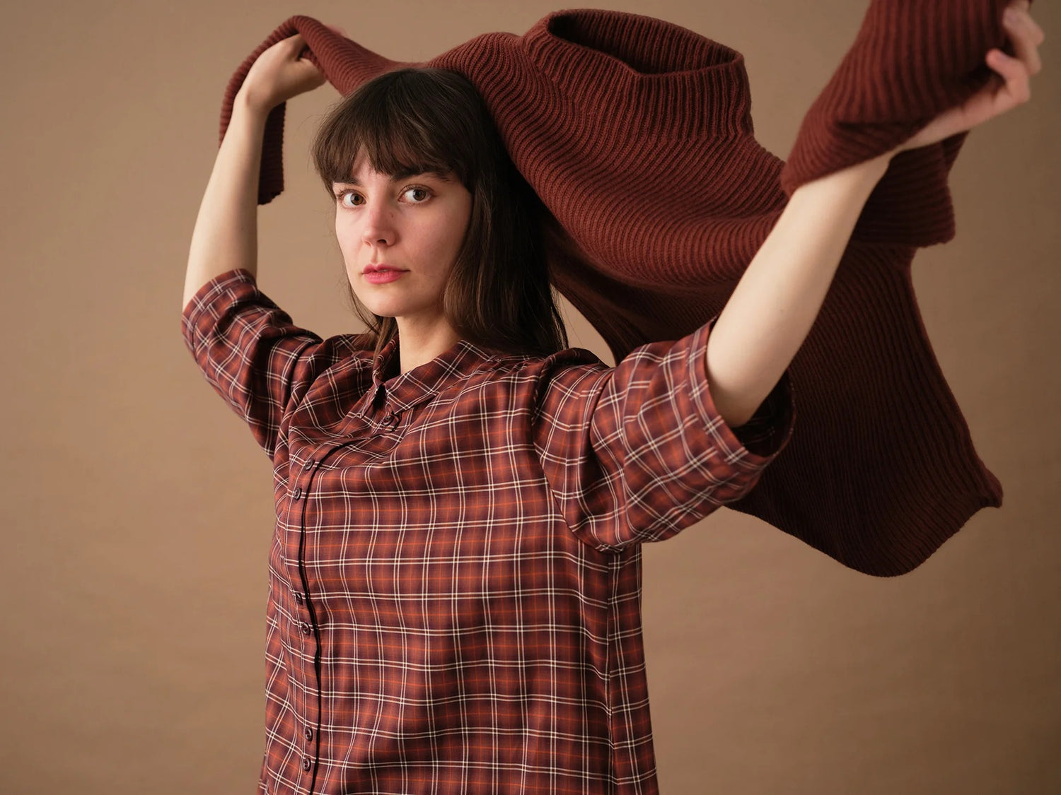 Liebling Svala Rostfarbenes Fensterkaro-Hemdkleid